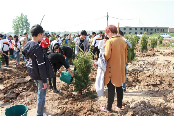 上午9:30分,植樹活動正式開始。高莊鎮(zhèn)政府相關(guān)干部、基泰集團全體人員與師生們一起揮動鐵鍬培土,提水澆灌樹木,一片忙碌景象。經(jīng)過一上午的辛勤勞動,近三百棵雪松整整齊齊的屹立在壽平村的土地上。盡管當天氣溫有點高,但是高不過每一個參與者的熱情,當大家看著自己親手種下的樹苗亭亭玉立于眼前時,所有的汗水和勞累都被拋之腦后,換來的無盡的欣慰和歡聲笑語。