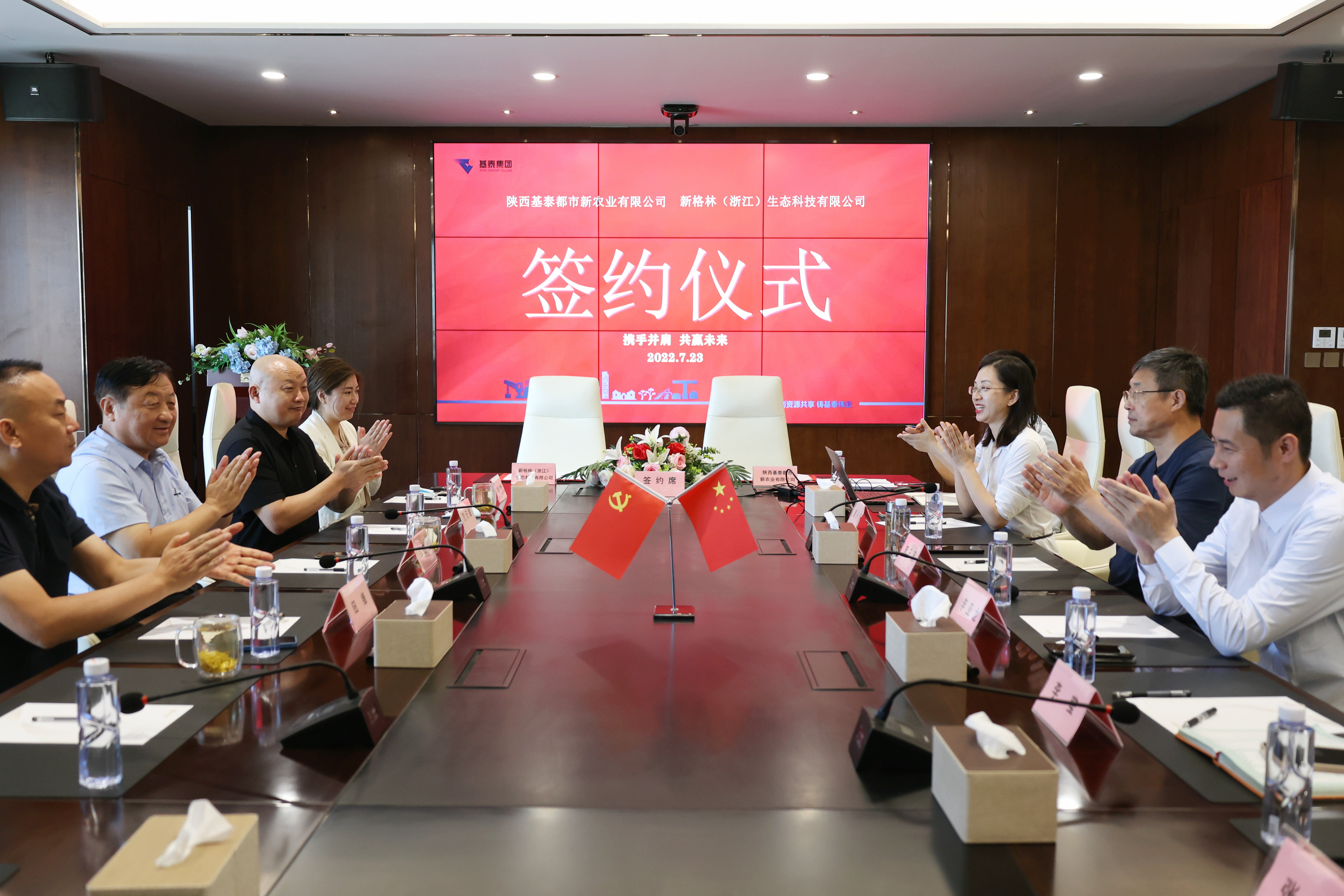7月23日,基泰都市新農(nóng)業(yè)有限公司與新格林(浙江)生態(tài)科技有限公司簽署戰(zhàn)略合作協(xié)議,共同打造“園藝融合產(chǎn)業(yè)園”項(xiàng)目。基泰綠色生態(tài)發(fā)展研究院特聘專家李三原、西北農(nóng)林科技大學(xué)園藝學(xué)院院長鄒志榮、新格林(浙江)生態(tài)科技總經(jīng)理范天擎、基泰都市新農(nóng)業(yè)總經(jīng)理李亞龍等出席簽約儀式。
