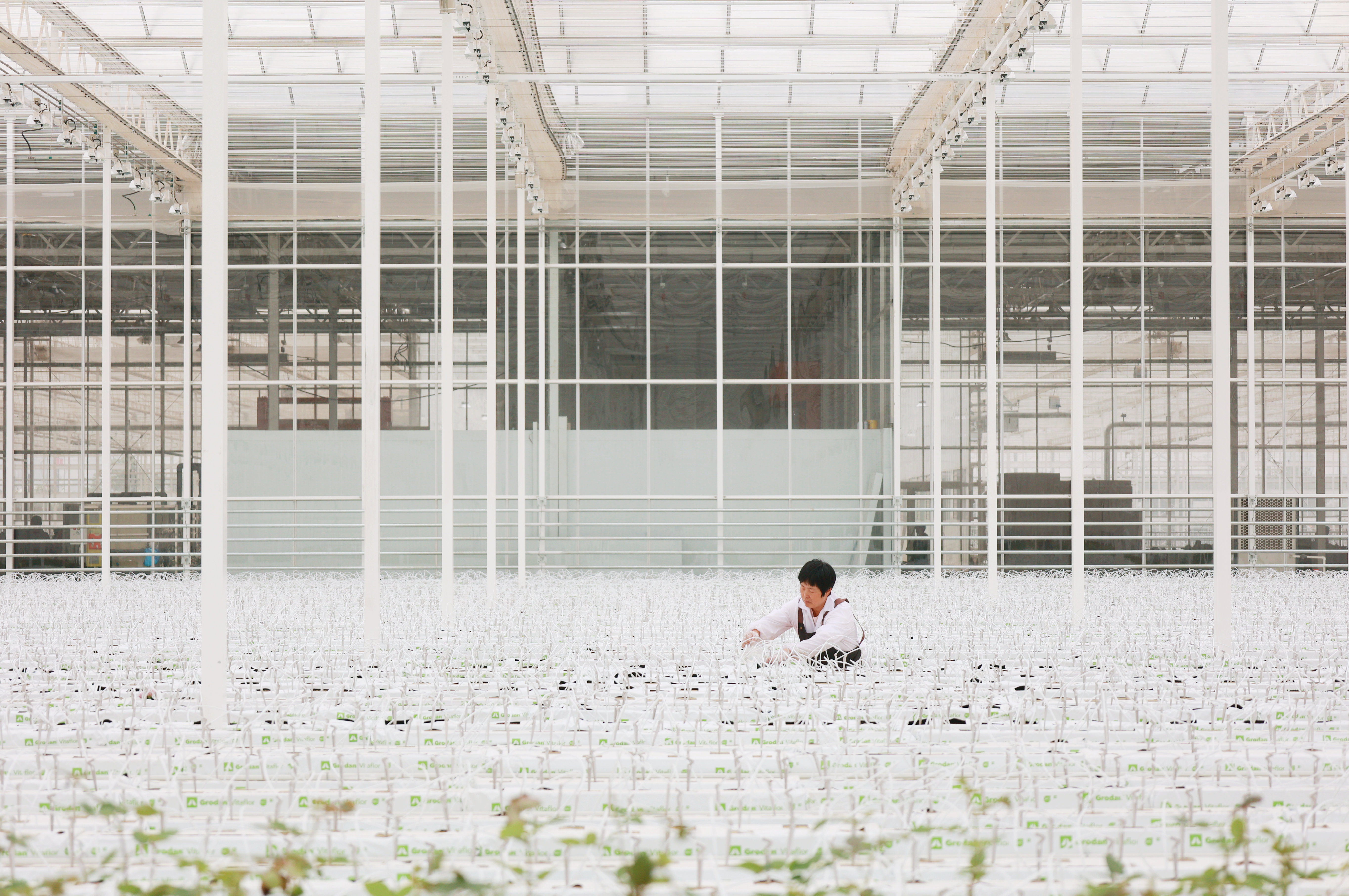 熱火朝天的定植現(xiàn)場(chǎng),產(chǎn)業(yè)工人們?cè)谶M(jìn)行巖棉條開(kāi)口、種苗運(yùn)輸?shù)榷ㄖ睬谢倒宓那捌跍?zhǔn)備工作,技術(shù)人員對(duì)水肥灌溉系統(tǒng)、環(huán)境控制系統(tǒng)進(jìn)行最后的處理調(diào)試,現(xiàn)場(chǎng)一片繁忙的景象。