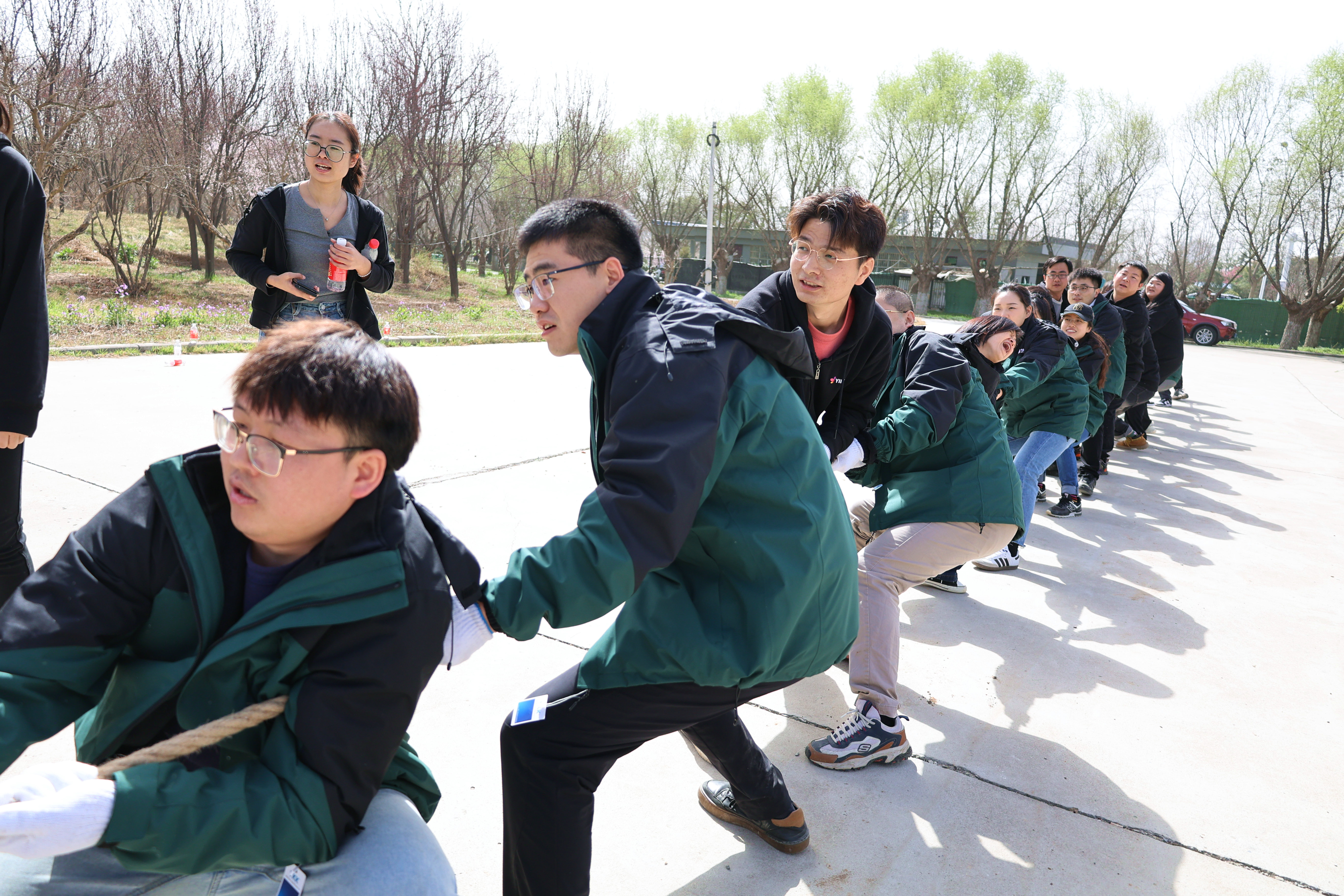 “一二,加油,一二,加油...”植綠活動(dòng)結(jié)束后,一場(chǎng)激動(dòng)人心的拔河比賽正式拉開帷幕,比賽現(xiàn)場(chǎng)氣氛高漲,口號(hào)聲、吶喊聲、歡笑聲,此起彼伏,大家盡情揮灑著激情和喜悅。