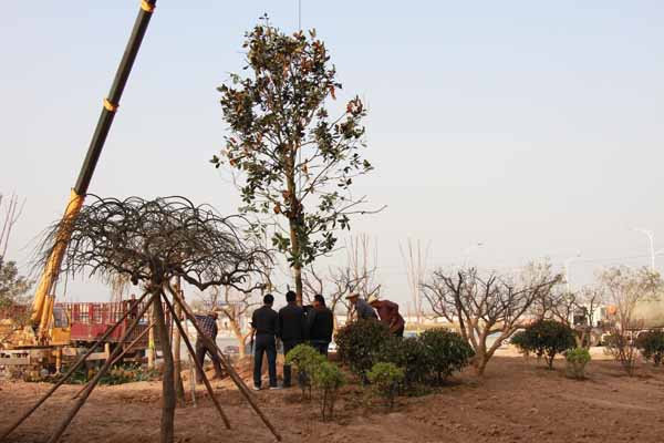 此次辦公樓綠化工程由園林項目負(fù)責(zé)人李奮成帶領(lǐng)相關(guān)技術(shù)人員按照前期規(guī)劃進(jìn)行施工,工程整體綠化總面積近1400平米。截止目前,已種植龍爪槐、廣玉蘭、榆葉梅、石榴等苗木近50棵,各種樹木形態(tài)各異,錯落有致,一派生機勃勃的景象。李經(jīng)理指出:接下來還將繼續(xù)種植紅葉石楠球、黃楊球、大葉女貞等近20多個品種的樹木,草皮鋪植工作也隨即開始動工,此次辦公樓綠化工作計劃于六月份完工。
