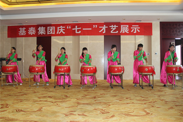 此次才藝展示,節(jié)目的內(nèi)容豐富,形式多樣,有氣勢磅礴的大合唱《沒有共產(chǎn)黨,就沒有新中國》,有獨具一格的薩克斯獨奏,有聲情并茂的詩朗誦(《我的祖國》),有獨具魅力的男、女聲獨唱、男女對唱,有鼓動人心的鼓樂表演,手語舞《感恩的心》等。其中鼓樂舞《鼓動基泰》,讓人在快速躍動的節(jié)奏中,感受基泰精神,感受生命的激情,給人留下深刻的印象。