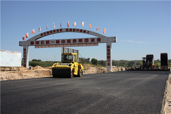 工程自去年9月中旬開工以來,截止日前,完成了路基、路面底基層、基層、瀝青混凝土下面層、中面層、上面層鋪筑工作;其他附屬工程:排水溝、擋墻工程、路面邊坡整理已全部完成,路邊石已完成80%;交通安全設(shè)施工程:路面標(biāo)線工程、邊撞護(hù)欄已完成70%,安全標(biāo)志牌正在安裝中,工程計(jì)劃于10月下旬交工驗(yàn)收。