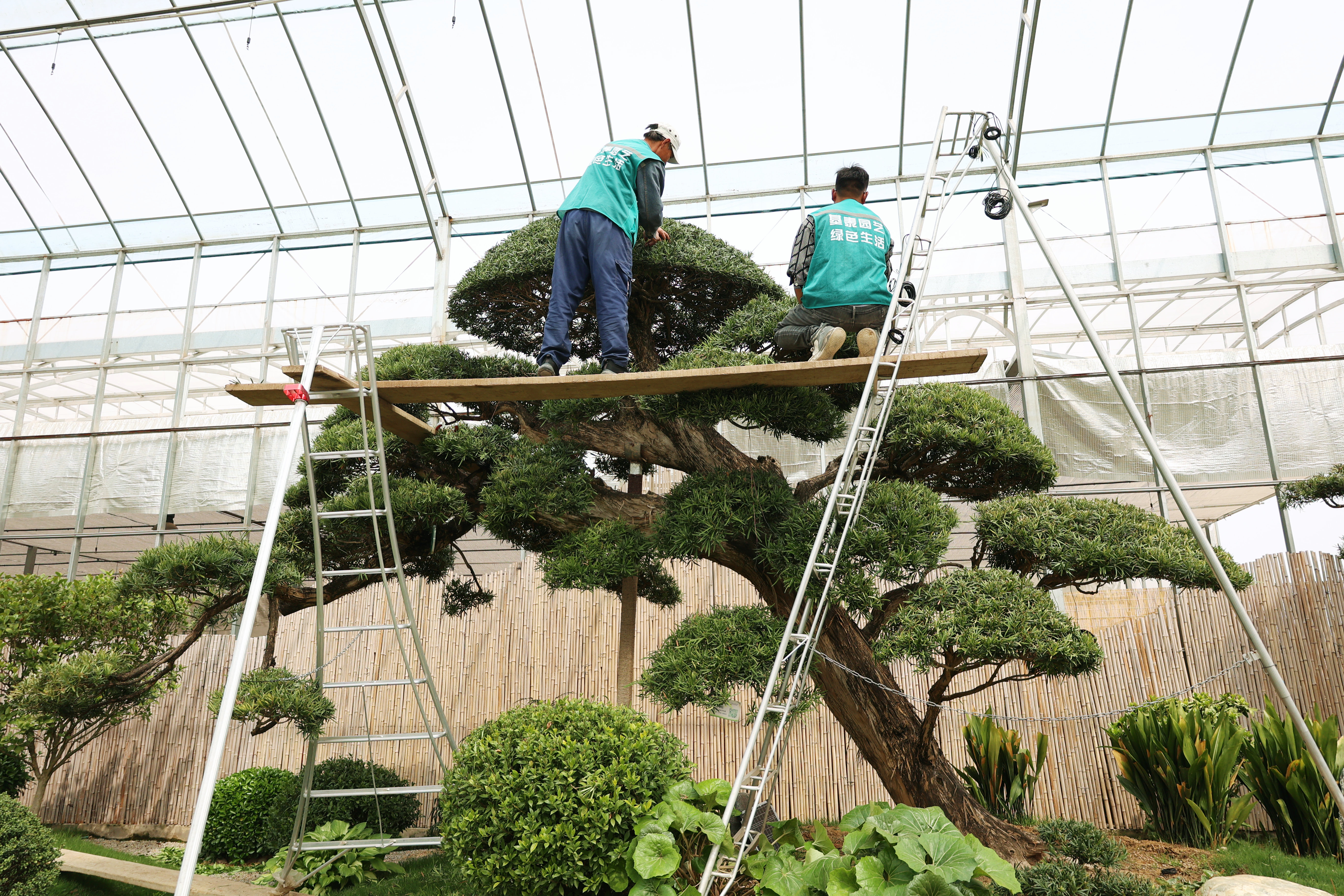 三到五月上旬是適宜黑松修剪的時(shí)節(jié),園藝師們運(yùn)用鋁絲蟠扎工藝,巧妙地給黑松開(kāi)胚,定向培養(yǎng),使每一棵黑松都呈現(xiàn)出獨(dú)特而優(yōu)雅的姿態(tài)。
